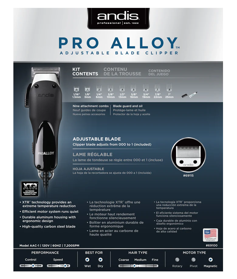 ANDIS Pro Alloy Clipper with Reduce Temp - Model #AN-69100