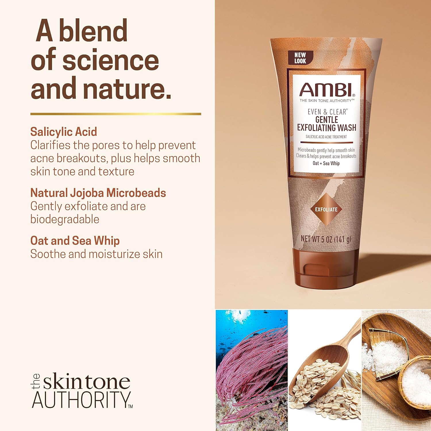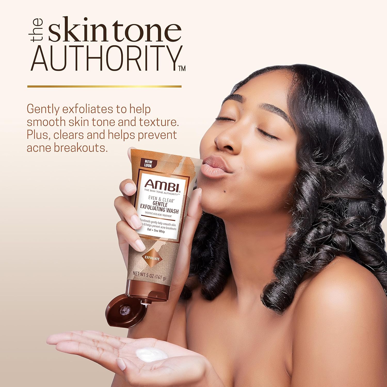 Ambi Even & Clear Gentle Exfoliating Wash with Oat and Sea Whip, Salicylic Acid Acne Treatment, Helps Clear & Prevent Breakouts, Exfoliates to Help Smooth Skin Tone & Texture, 5 Ounce
