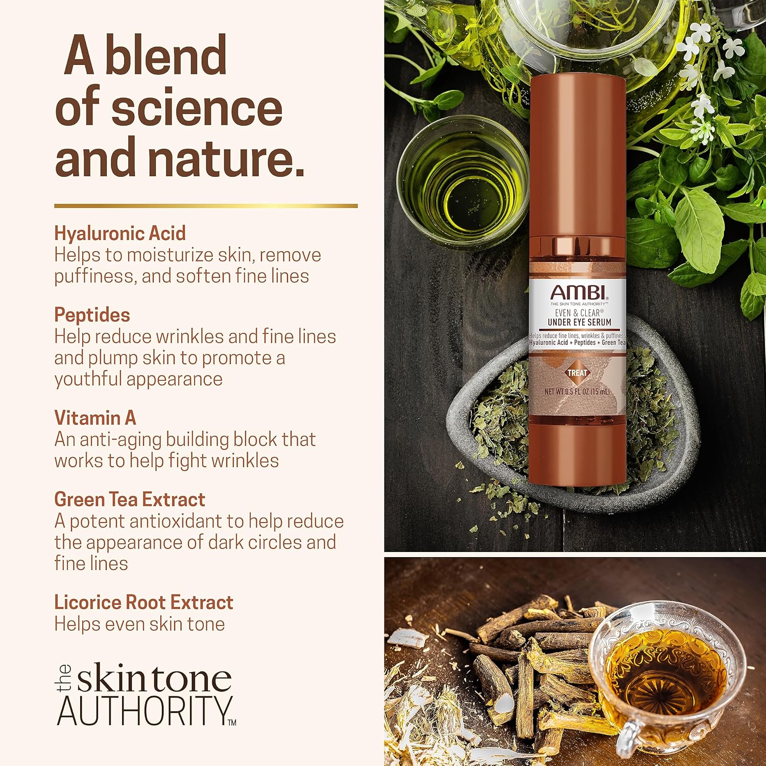 Ambi Even & Clear Under Eye Serum for All Skin Types; Anti Aging Formula features Peptides, Hyaluronic Acid, and Vitamin A to help Reduce Fine Lines, Wrinkles, and Dark Circles , 0.5 Ounce
