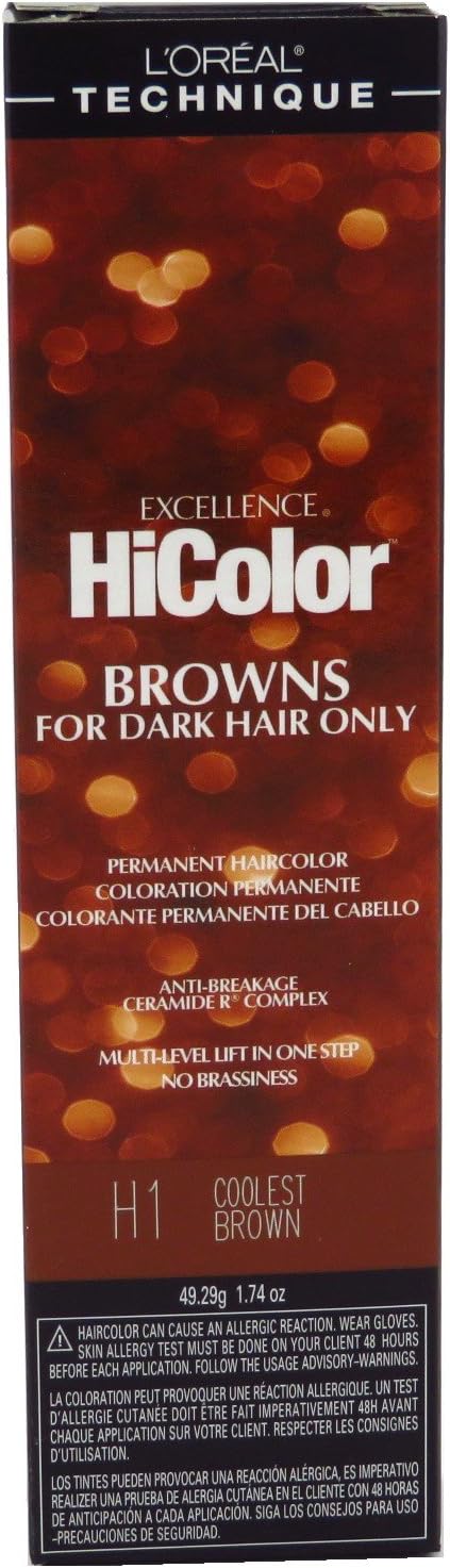 Elevate your hair color game with L'Oréal Excellence HiColor H01 Coolest Brown, the perfect choice for achieving a rich, vibrant brown tone with cool undertones. Specially designed for dark hair, this high-performance permanent hair color provides intense results without the need for pre-lightening.