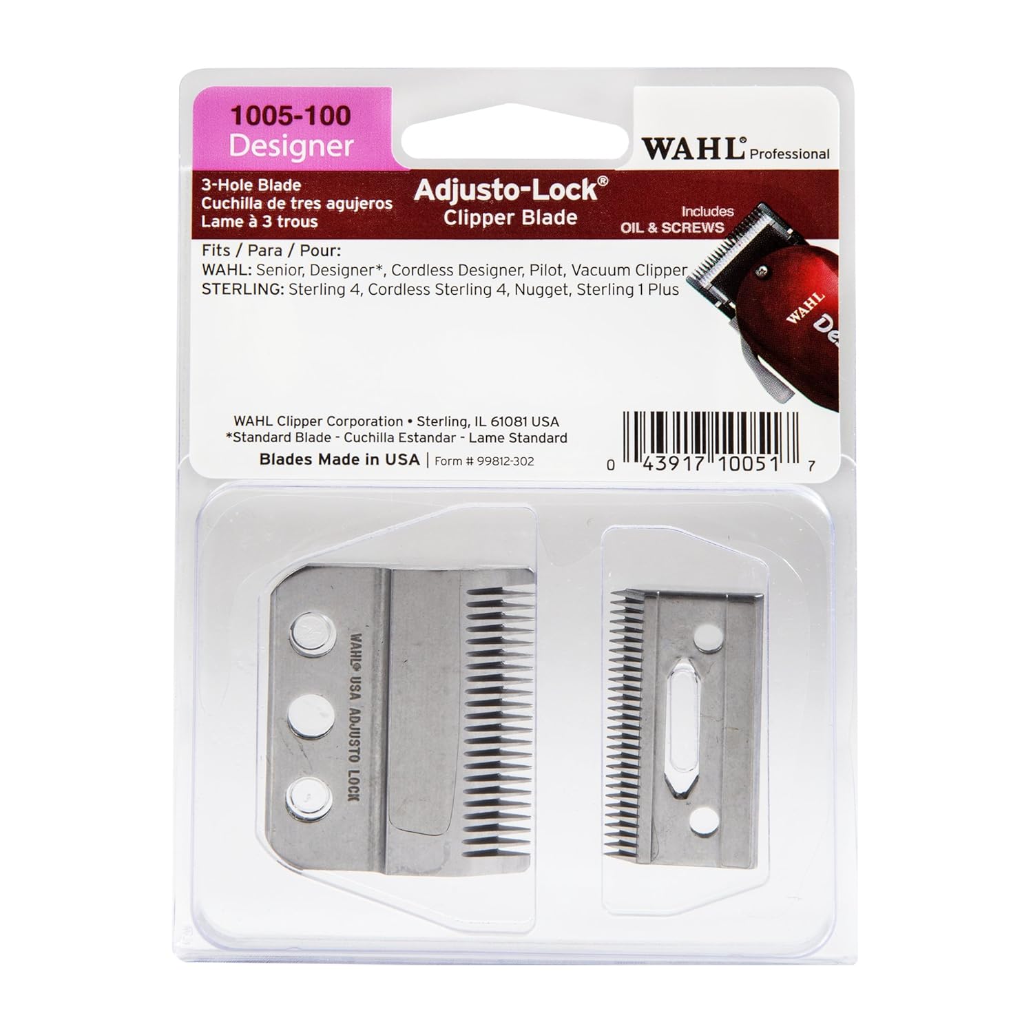 - PRODUCT SPECIFICATIONS: Package contains 1 Wahl Professional Adjusto-Lock Designer Clipper Blade; Silver in color, includes blade oil and instructions. intended for professional use only, blades made in the U.S.A