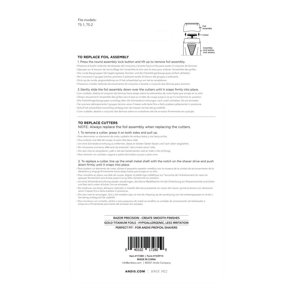Andis 17155, Pro Shaver Replacement Foil & Cutter - Compatibles With Andis Models, Super Soft Gold Titanium Cutters - For Close Cutting, Smooth Shaving, No Bumps/Irritation, Zero Finish – Gray