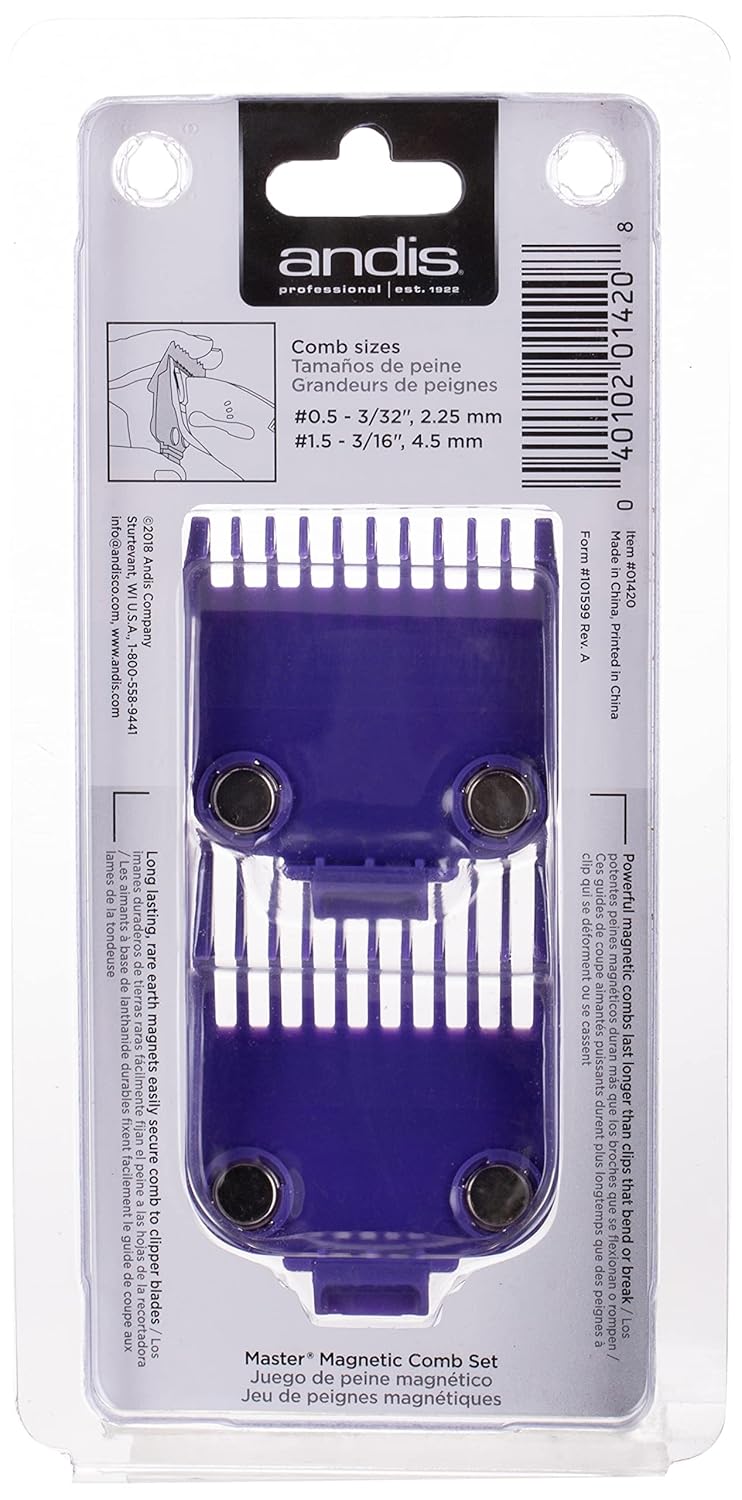 Andis 01420 Master Clipper Magnetic Comb Set - Crafted for Long-Lasting Performance - Dual Pack Sizes 0.5 & 1.5 and Fit with ML Models – Purple